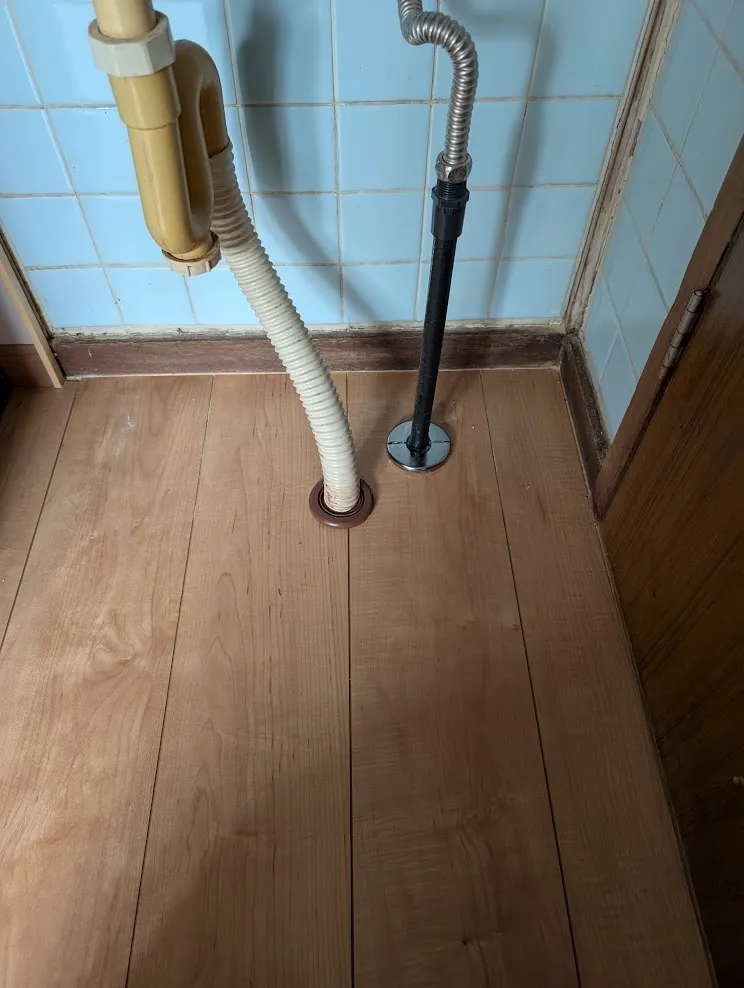 排水及び給水を工務店でやり、ホームセンターでキャップ等を購入して