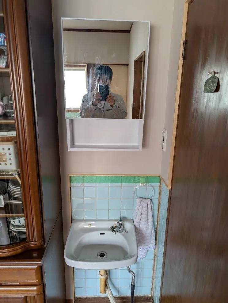 洗面台の上の鏡収納はインターネットで購入した物の取付をしました。