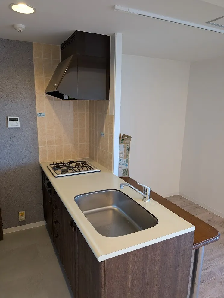 キッチンの壁もうまく納まりました。