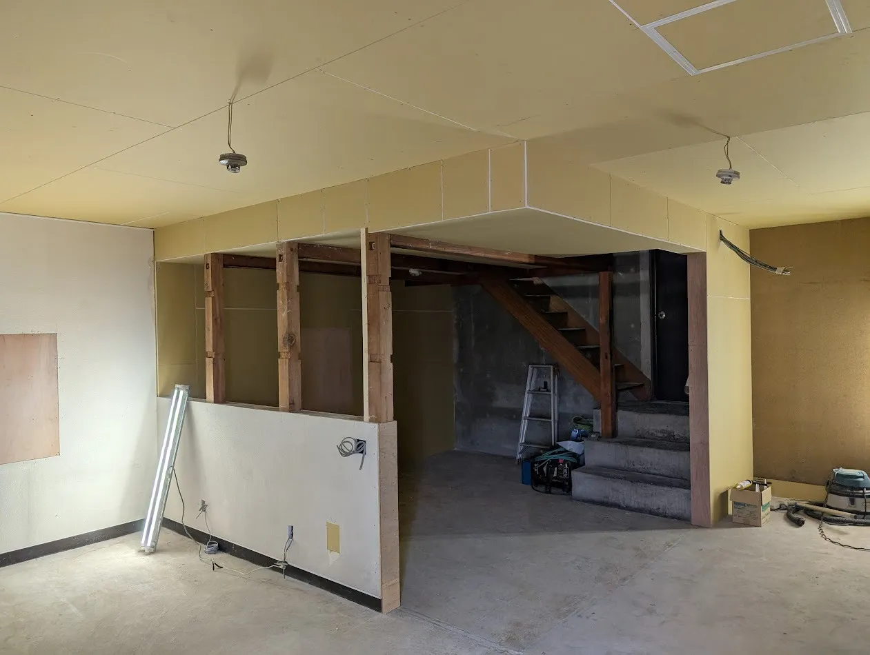 【北名古屋市】会社の食堂と倉庫の改修工事 PB張り 今回は、社長の真寿が書きます。会社の食堂と倉庫の改装工事の続きです、下地作成も終わり、プラスターボードを張りました。だいぶイメージが付きやすくなりました、この後、塗装、クロス工事、器具付け…